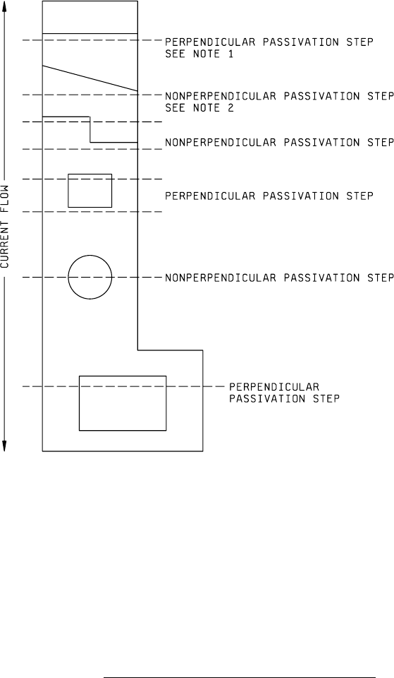 2. All passivation steps nonperpendicular to current flow must be projected onto cross-sectional planes