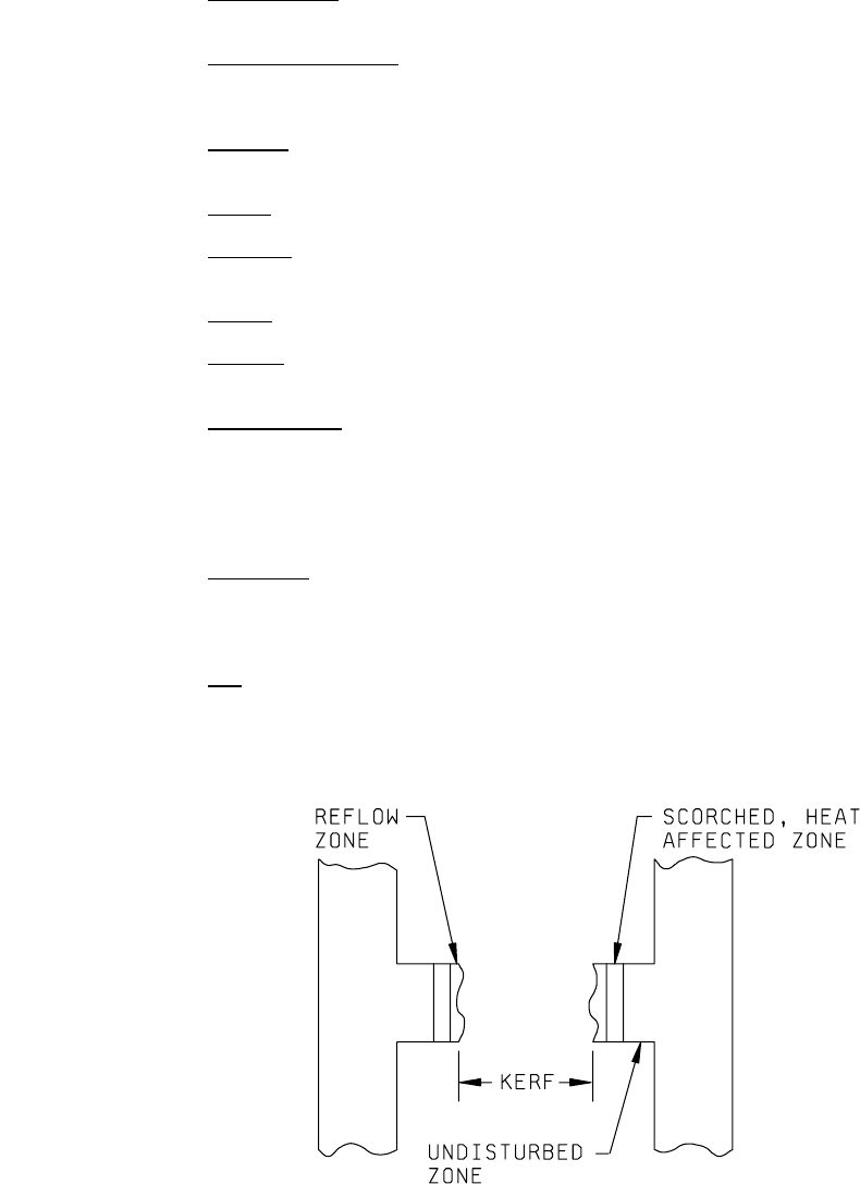 operation. In laser trimming, the kerf is bounded by the reflow zone (which is characterized by adherent,