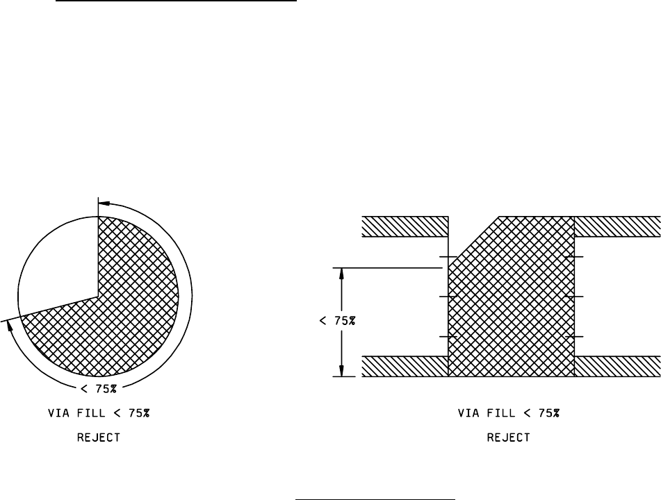 b. Any lifting, peeling, or blistering of the via metallization.