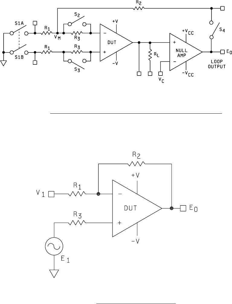 MIL-STD-883F METHOD 4004.1 22 March 1989 4 FIGURE 4004-3. Test s etup for open loop gain, di stor tion and maximum output voltage s wing . FIGURE 4004-4. Test s etup for uni ty gain bandwi dth .