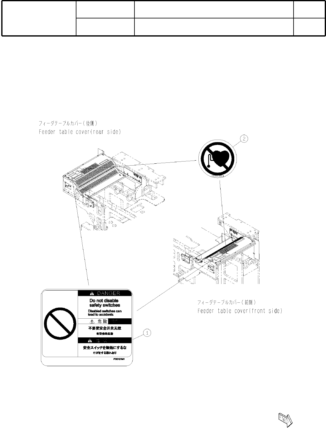 銘板・警告ラベル(フィーダテーブルカバー):NPM-D
