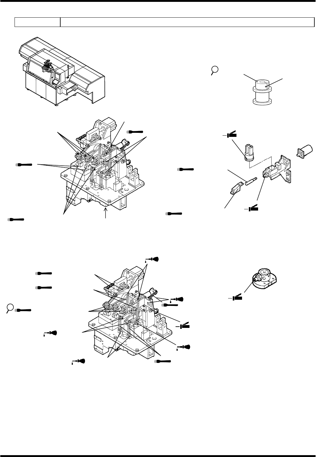 AVK3 维修手册 6.2 检查和润滑 D77MCC-80-020-C0 6.2-14 检查 周期 编号 项目 工作 描述 a. 各轴 确保轴上 / 下移动平稳。 b. 插入轴 确保插入轴旋转平稳。 c. 导螺杆 确保导螺杆工作平稳。 每天 d. 滑块 确保滑块移动平稳。 e. 螺母 确保螺栓不会松动。 f. 凸轮从动件 确保凸轮从动件移动平稳。 每周 g. 线性轴衬 清除异物或灰尘。 h. 同步支带轮 凹槽:清除异物,灰尘或皮带废…