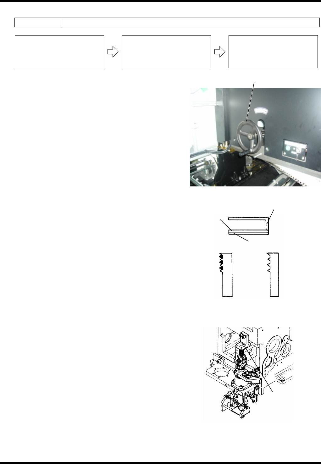 RL131 维修手册 8.2 移交夹头方面 DA8MCC-W 4-400-A0 8.2-3 8.2.3 移交夹 头的移送量以及 中心的调整 Unit No. X02G44000AB 8.2.2 移交夹头爪的调整 8.2.3 移交夹头的移送量 以及中心的调整 移交夹头 移送量的调整 3. 1. 转动手动转盘, 使循环计时器对准 3 00 ° 。 2. 将电子元件治具 靠在移交夹头爪上, 设置好。 3. 将千分表靠在插 入夹头爪上,设置…