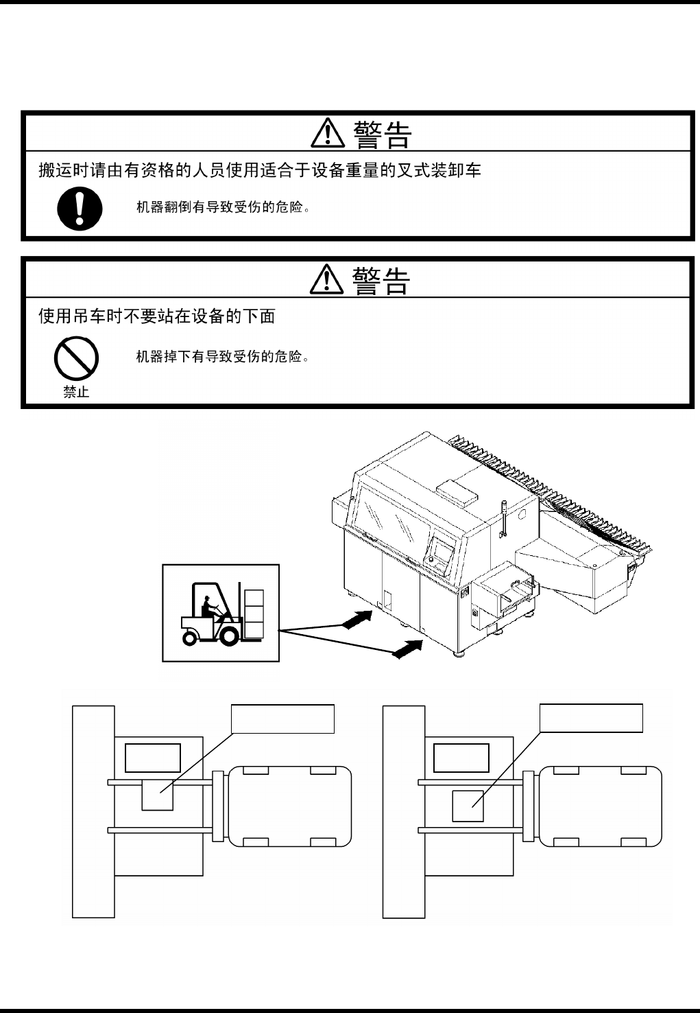 如果用户要自己搬运机器,请充分考虑本机器的重量,采用最合适的搬运设备,小心搬运。