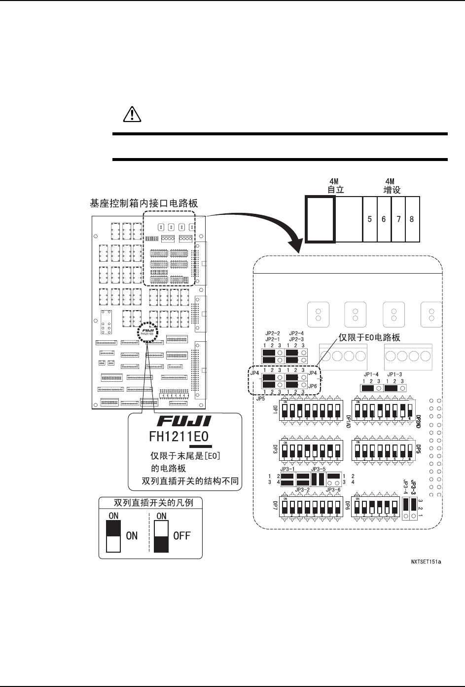 请按照以下设定基座内的接口电路板和远程控制 I/O 电路板上的跨接开关及双列直插开关。