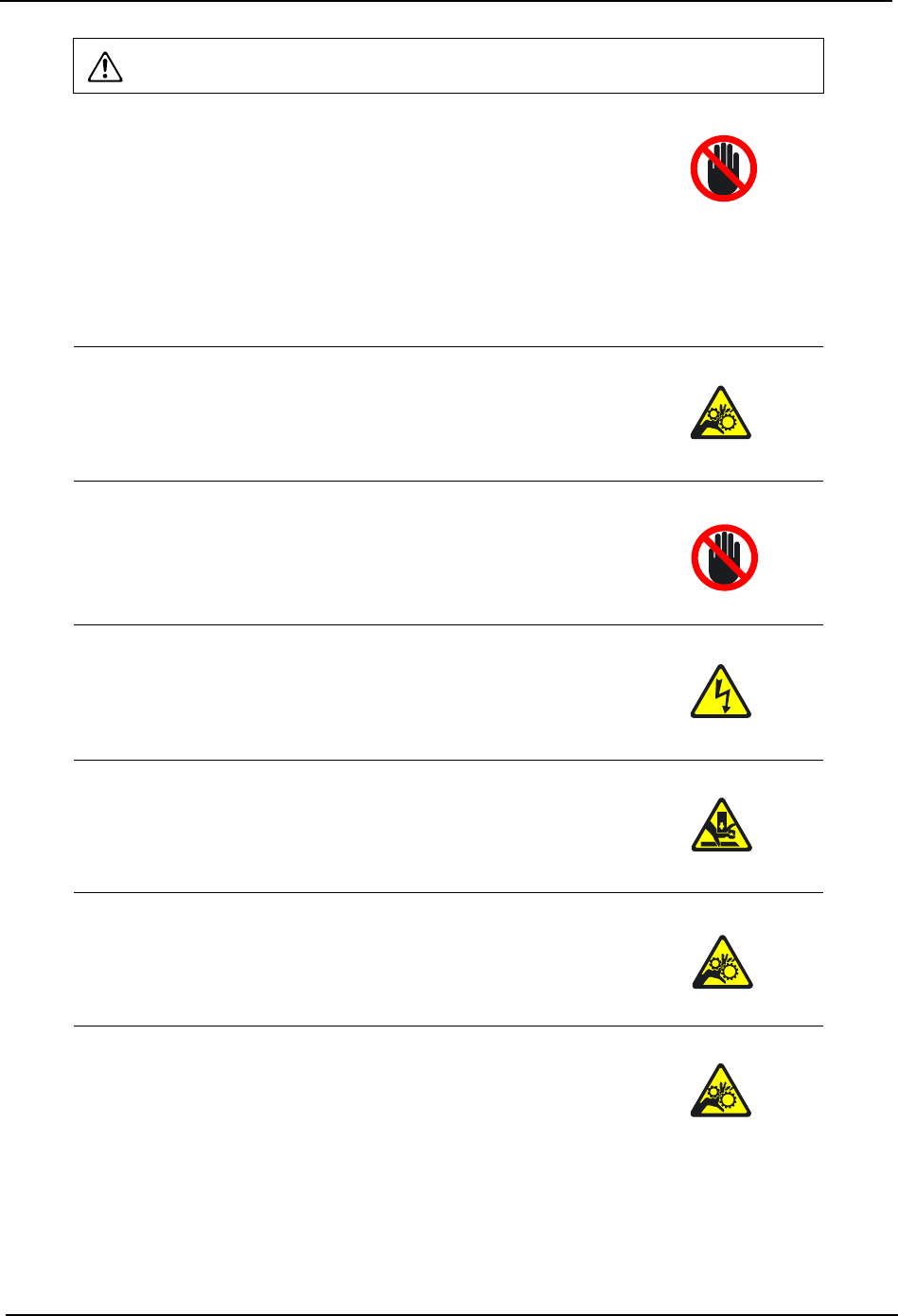 入机器下部。有可能被机器压砸手或脚而受伤。