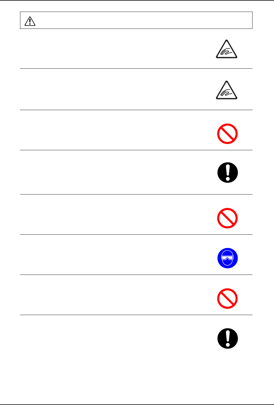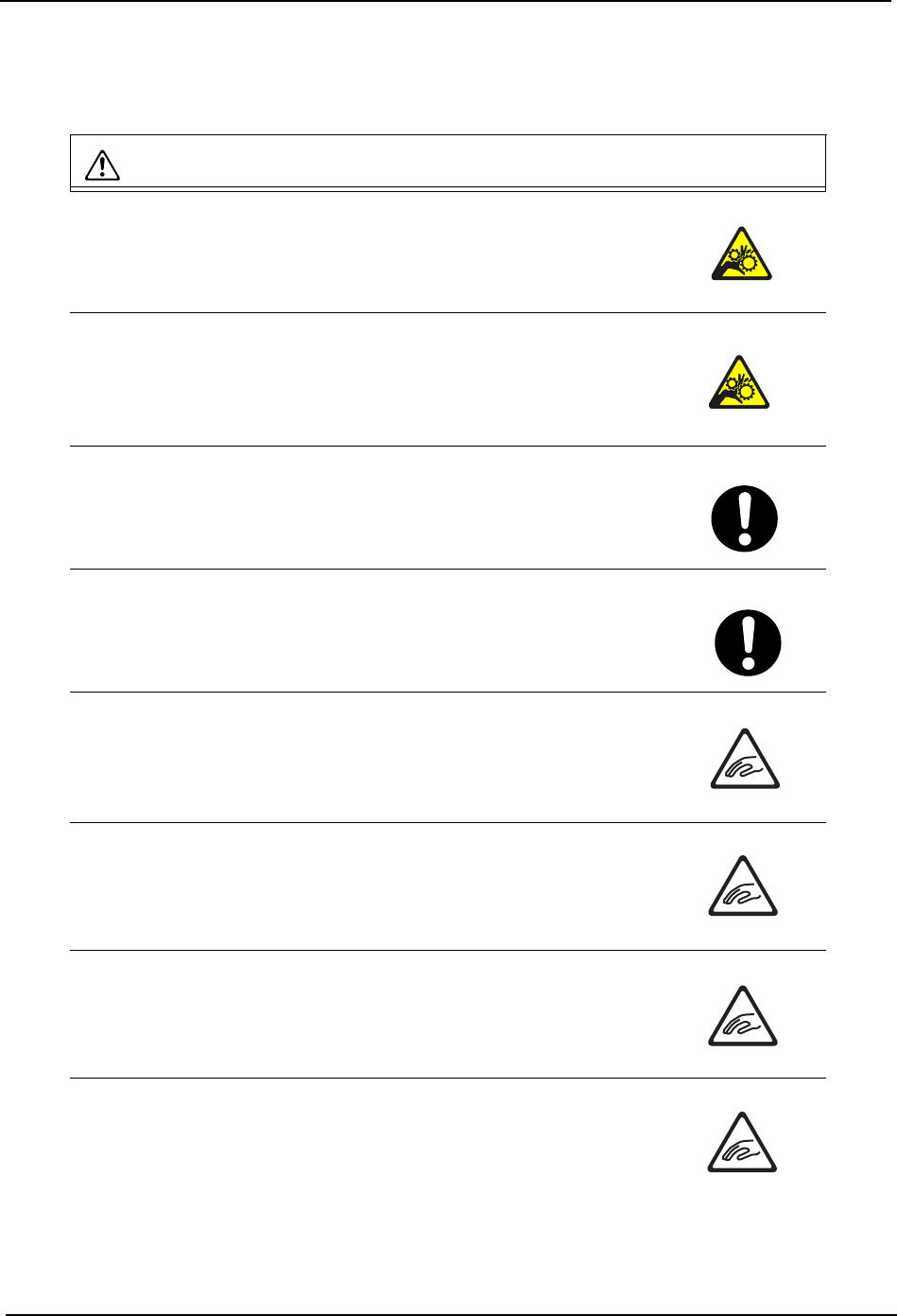 QD023-07 1. 安全指南 NXT 安装手册 5 1.3 各机型特有的注意事项 1.3.1 NXT 警告 在料站平台上搭载的供料器数量 较少的情况下,请不要将手指伸入 供 料器间的空隙中。 · 手指有可能与动作中的工作头接 触,被卷入机器而受伤。 在模组处于半拉出状态下进行搬 运轨道宽度变更的操作时,请不要 将 手伸入搬运轨道部位。 · 有可能被搬运轨道的可动轨道夹 住手指而受伤。 在进行 MCU 连接作业时,请确认在 MCU 与…