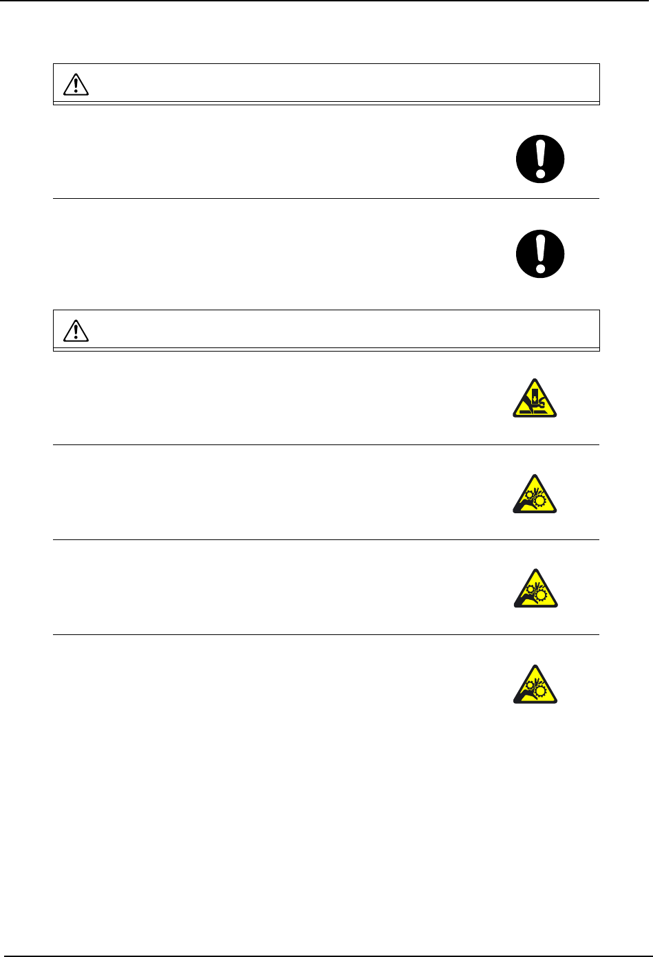1. 安全指南 QD023-07 10 NXT 安装手册 1.3.3 NXT 料盘单元 - M 警告 在向机器本体上安装、或者从机 器本体上取下料盘单元 -M 时,请注 意手不要靠近料盘单元 -M 与料站供料托架的间隙。 · 手指有可能被夹在料盘单元 -M 与料站供料托架之间而受 伤。 在向机器本体上安装、或者从机 器本体上取下料盘单元 -M 时,请在 复数作业者的协同下搬运料盘单 元 -M。 · 由于料盘单元 -M 非常沉重,落下后会…