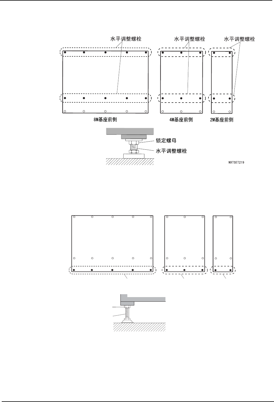 注意 ) 不要使在前侧水平调整螺栓上受到的机器重量太大,以免影响到基座的水平度。该前侧螺栓为