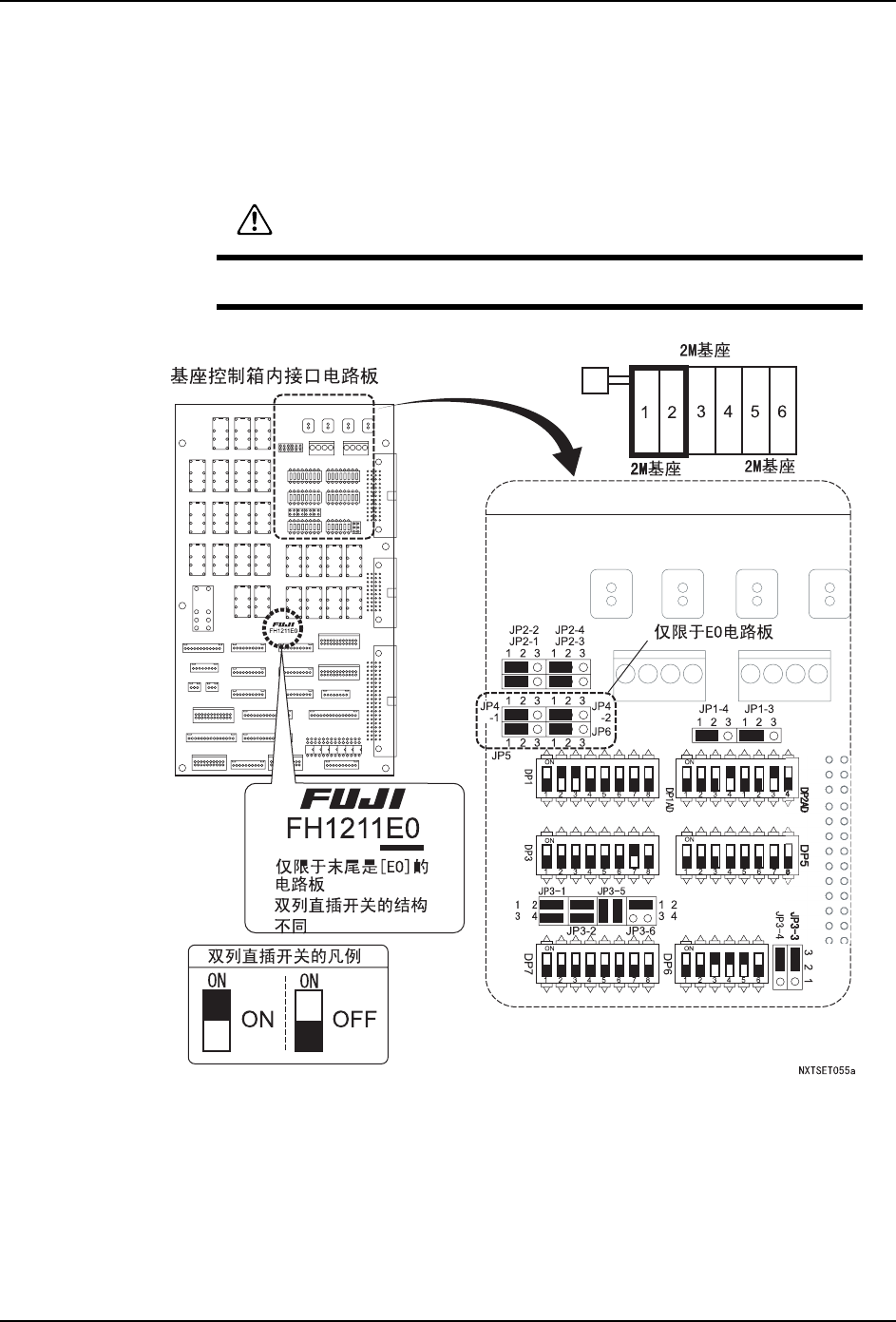 请按照以下设定基座内的接口电路板和远程控制 I/O 电路板上的跨接开关及双列直插开关。