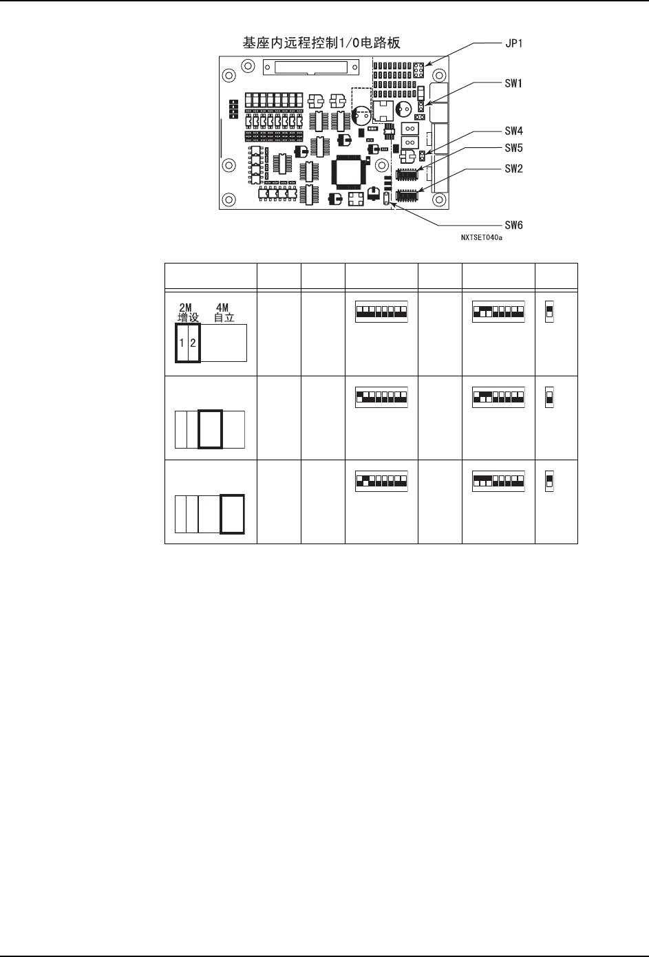请按照以下设定基座内的接口电路板和远程控制 I/O 电路板上的跨接开关及双列直插开关。