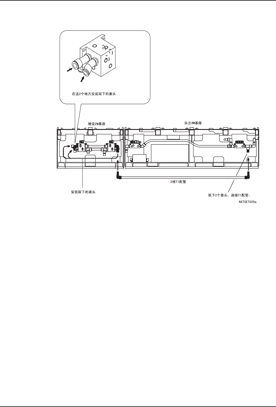 3. 机器的安装 QD023-07 84 NXT 安装手册 < 在序列号为 295 以后的自立 4M 基座旁增设时 > 基座的连接 完成信号电缆的连接及气 源管的配管后, 用专用支架连接相邻基座。 请参照 [3.8.13 增设的 固定 ]。