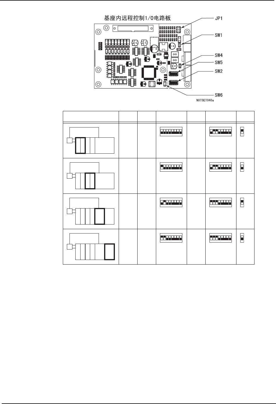 QD023-07 3. 机器的安装 NXT 安装手册 87 基座 JP1 SW1 SW2 SW4 SW5 SW6 开路 开路 短路 开路 开路 短路 开路 开路 短路 开路 短路 短路 0 㞾 ゟ 0 䆒 0 䆒 㧻㧺 㧝㧞㧟㧠㧡㧢㧣㧤 㧻㧺 㧝㧞㧟㧠㧡㧢㧣㧤 㧻㧺 㧝 0 㞾 ゟ 0 䆒 0 䆒 㧻㧺 㧝㧞㧟㧠㧡㧢㧣㧤 㧻㧺 㧝㧞㧟㧠㧡㧢㧣㧤 㧻㧺 㧝 0 㞾 ゟ 0 䆒 …
