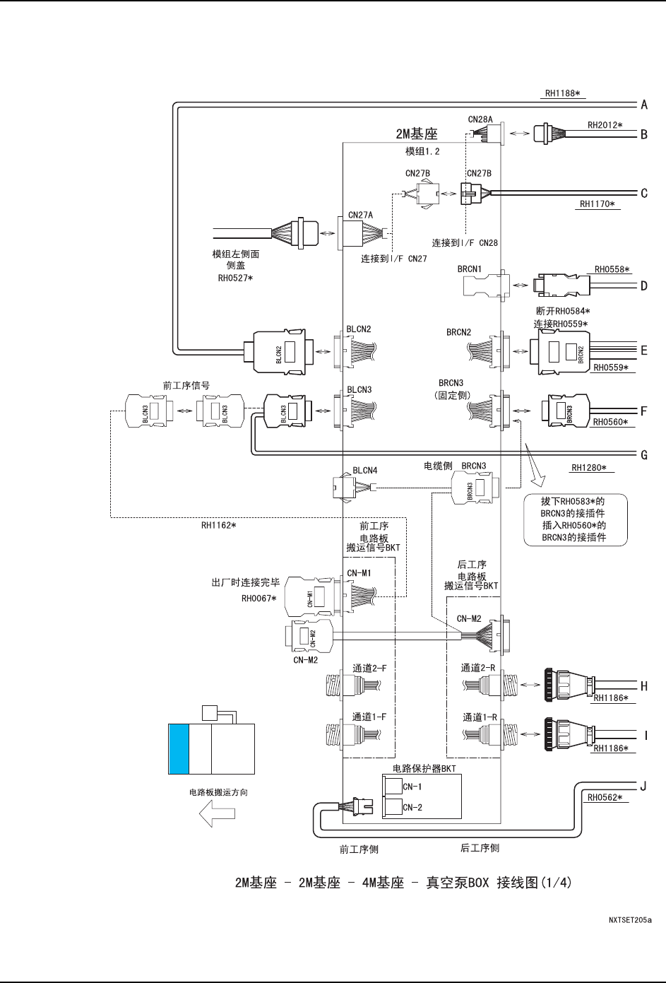 2M-2M 基座间的连接请使用基座连接导线 AJ457**,4M-2M 基座间的连接请使用 AJ517**。