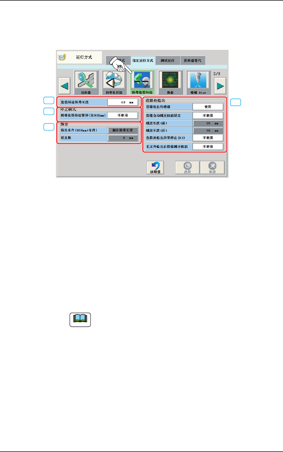 料带剩余量不到 900mm 时,选择料带连接补给暂停为