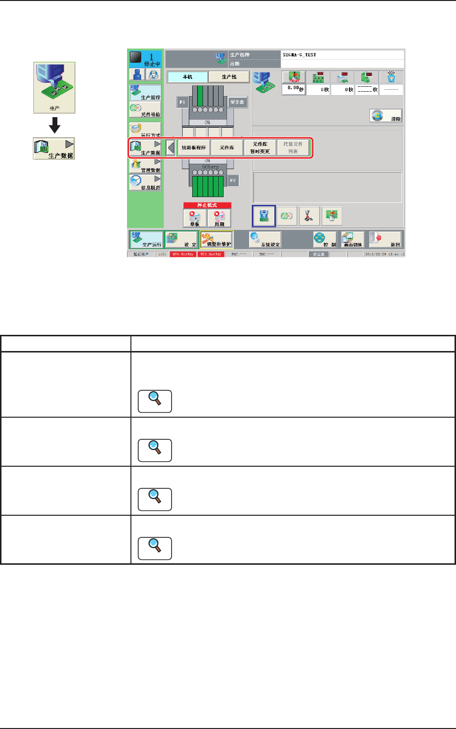 2OM-1752 1-58 5. 生产数据 F2A46 “ 生产数据 ” 子菜单分为以下 4 个项目,按下按钮,便显示各界面。 请充分了解各数据的使用目的后利用。 界面 内容 线路板程序 按每个生产运行编制的程序。 本装置的生产运行通过此线路板程序进行控制。 Reference 详细内容请参照 “ 第二章线路板程序 ” 章节。 元件库 ( 元件数据库 ) 为吸取、识别、贴装各元件的数据。 Refe…