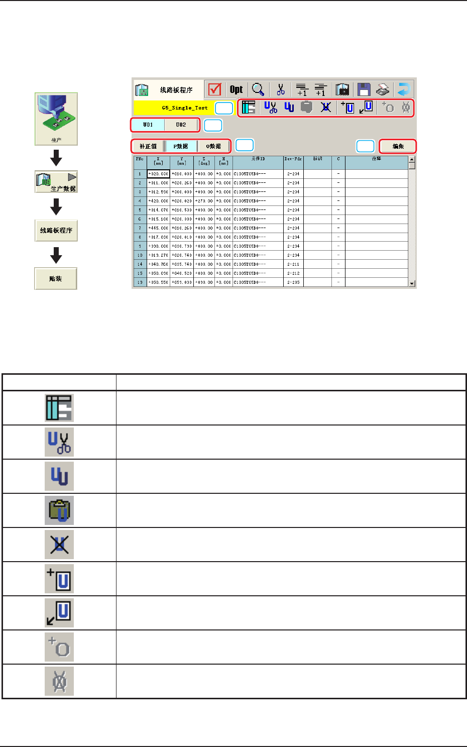 U01:第一个贴装数据组