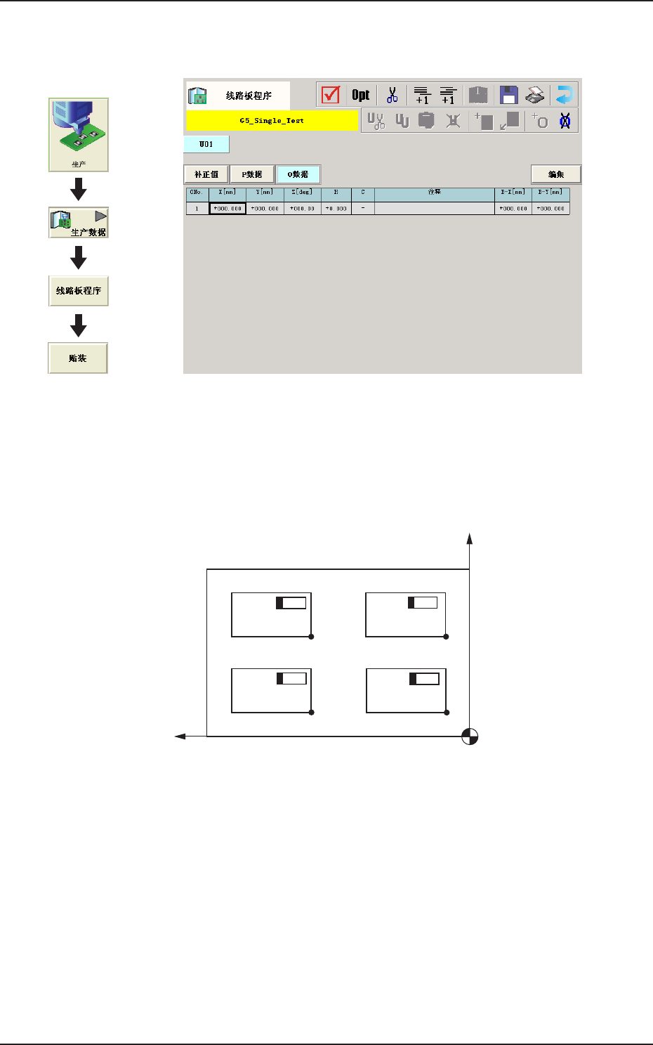 (O) 时、表示贴装数据 (P) 的步骤终止。