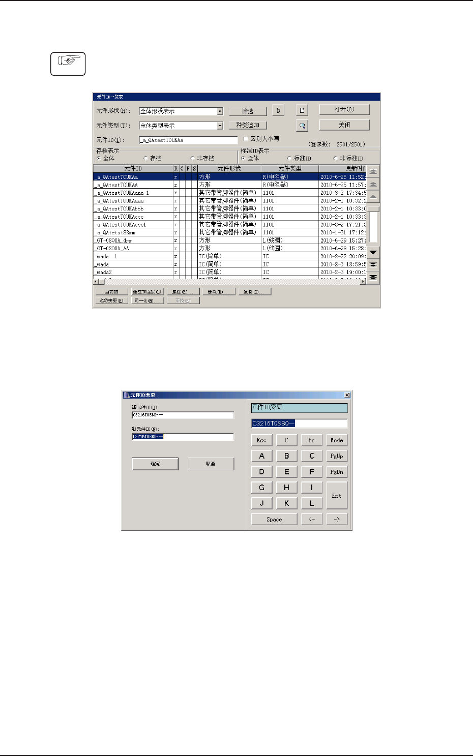 ( 显示确认界面,按下 [ 是 ] 按钮,删除元件 ID。)