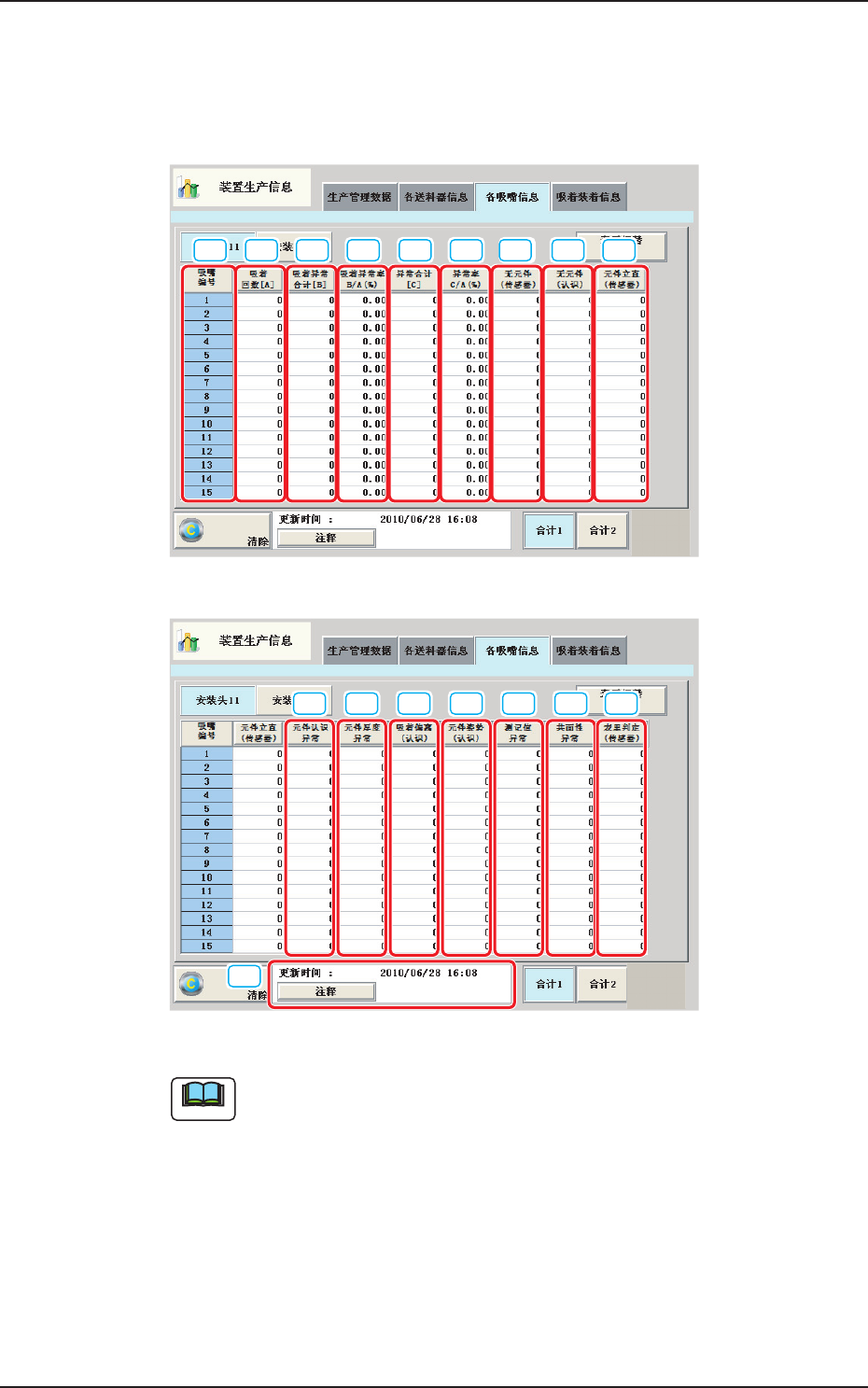 界面中,按下 [ 各吸嘴信息 ]Tab,便显示以下选项卡。
