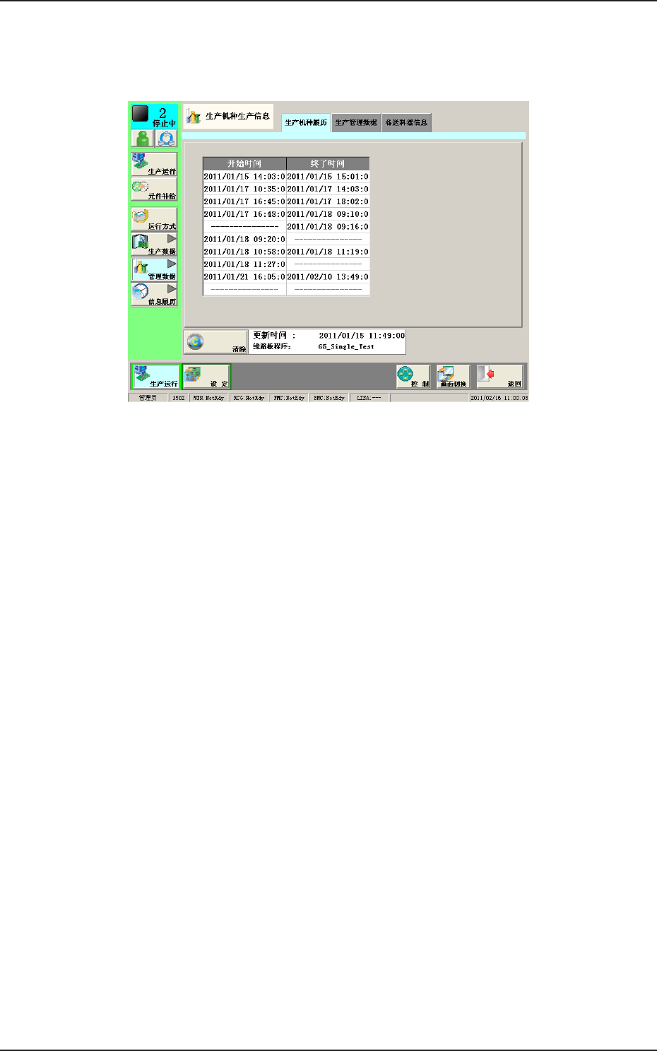 显示生产运行的开始时间和终了时间。