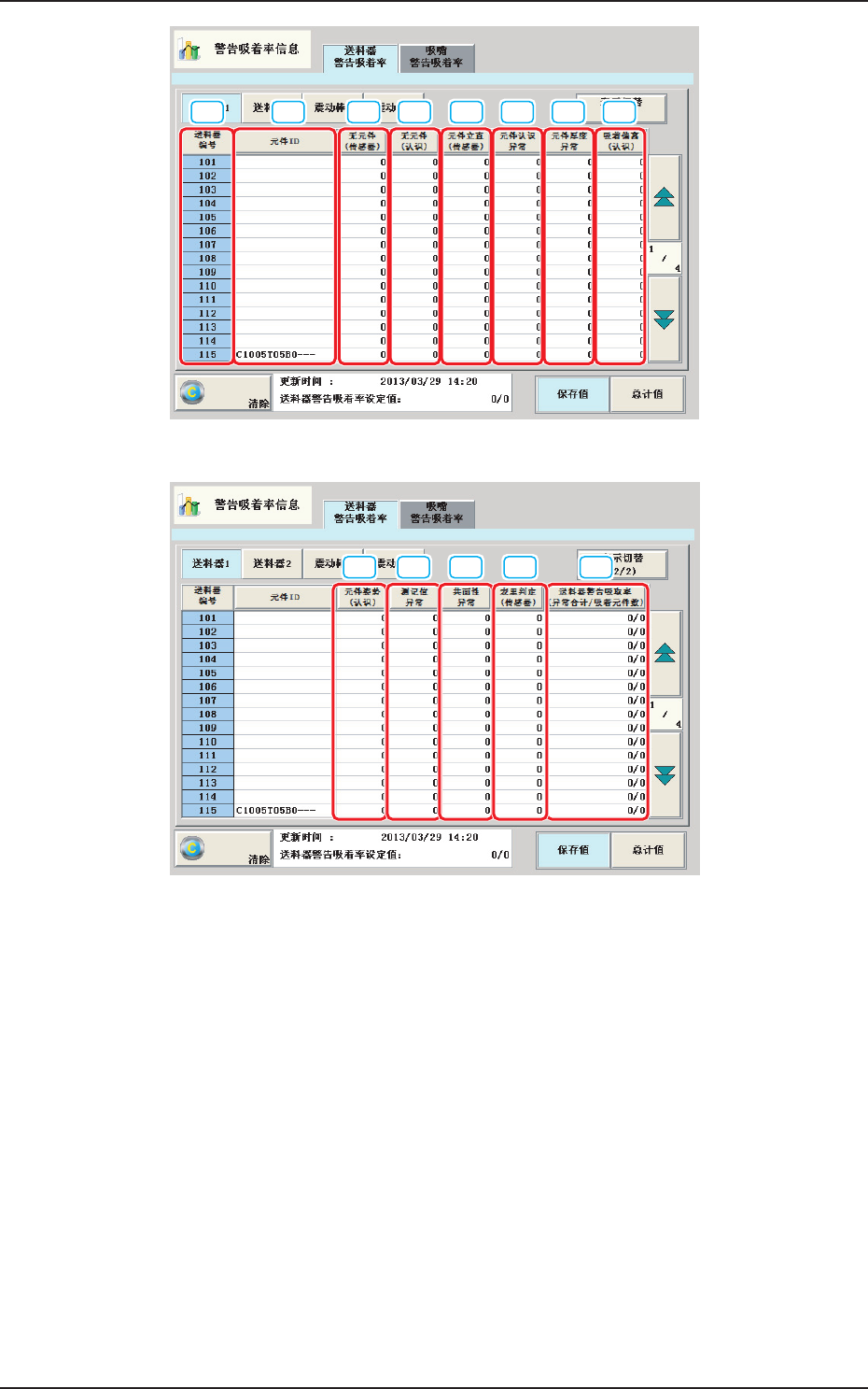 [13]送料器警告吸取率 ( 异常合计 / 吸者 ( 吸取 ) 元件数 )
