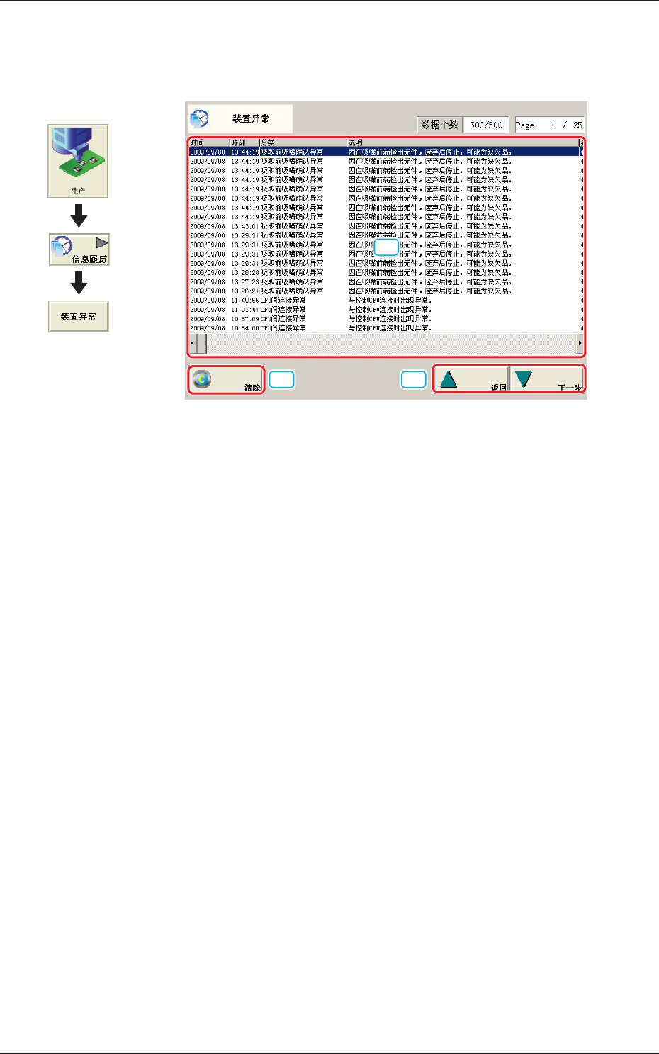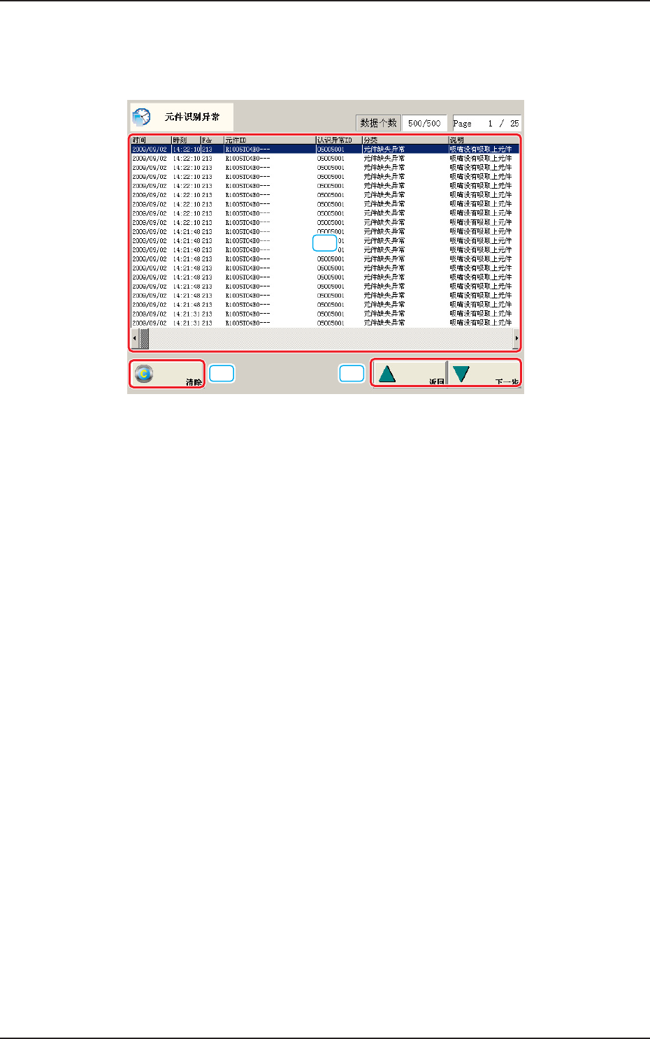元件认识 ( 识别 ) 异常 显示元件识别异常的异常履历。