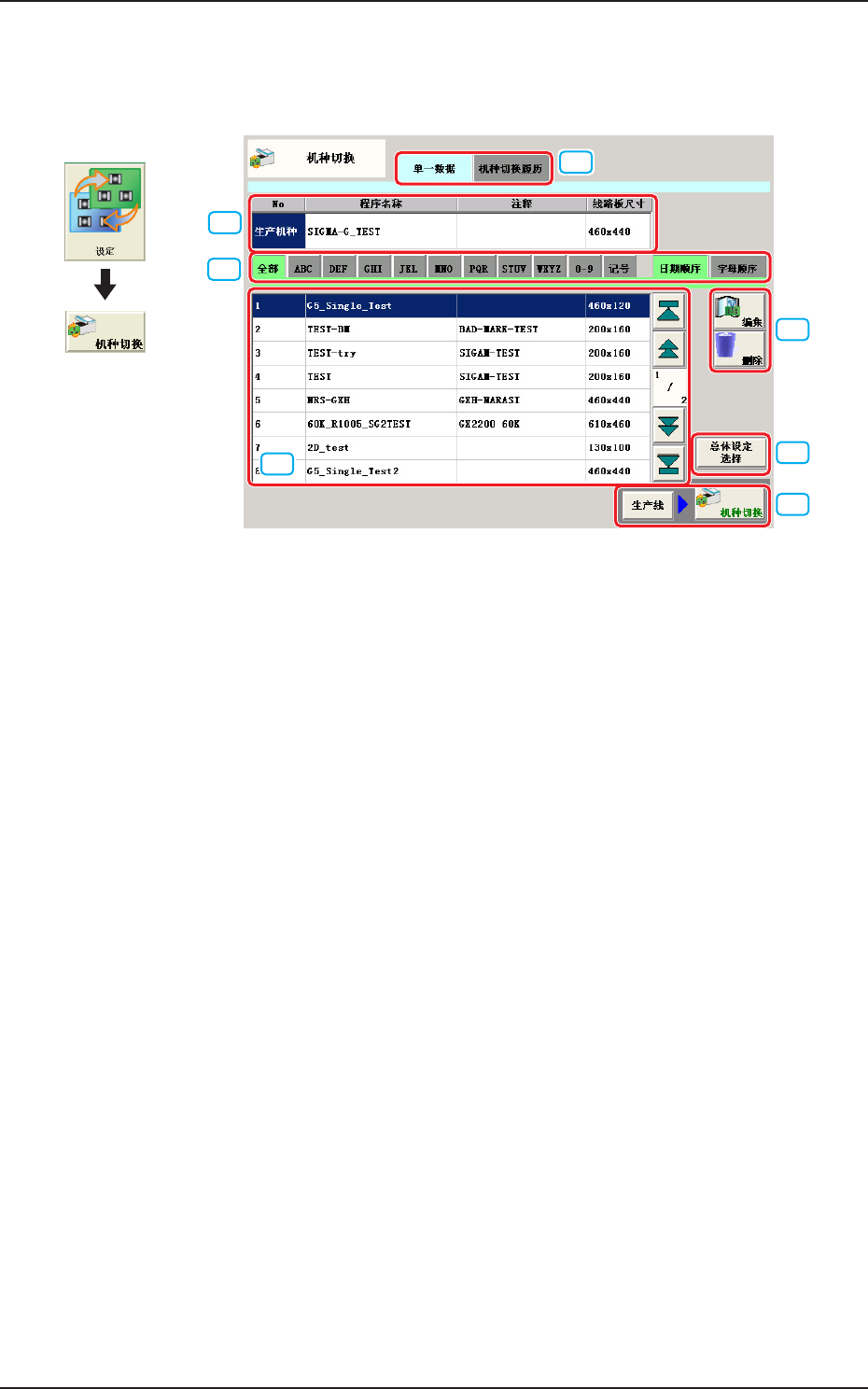 一览显示登录的机种 ( 线路板程序 )。