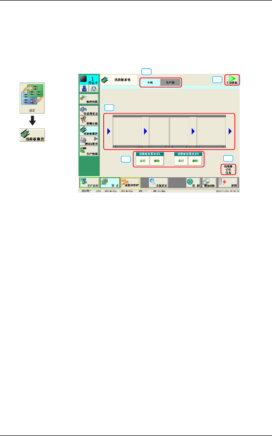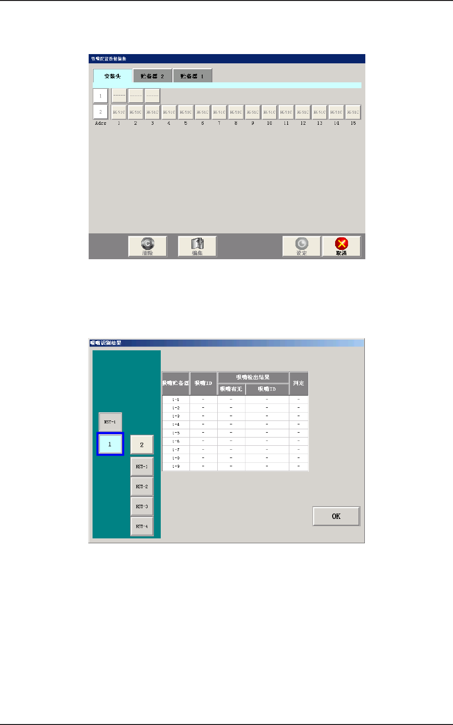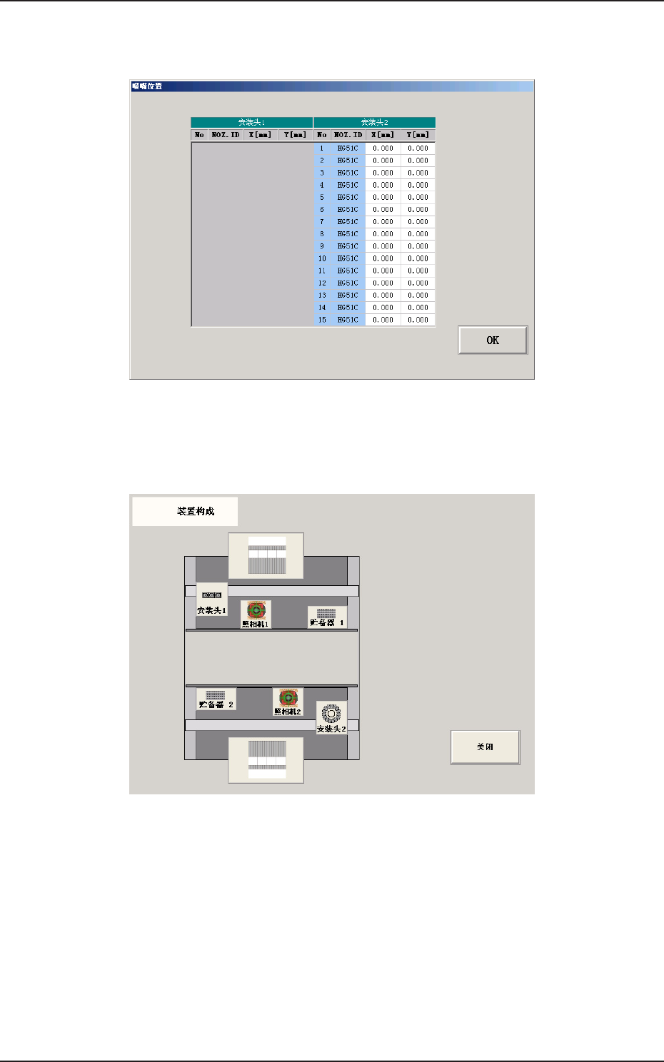 2OM-1752 6-22 1304-001 [10] [ 吸嘴位置 ] 按钮 显示各吸嘴位置的教示结果。 F2F26 [11] [ 装置构成画面 ] 按钮 显示当前的装置构成。 F2F27 5.吸嘴交换