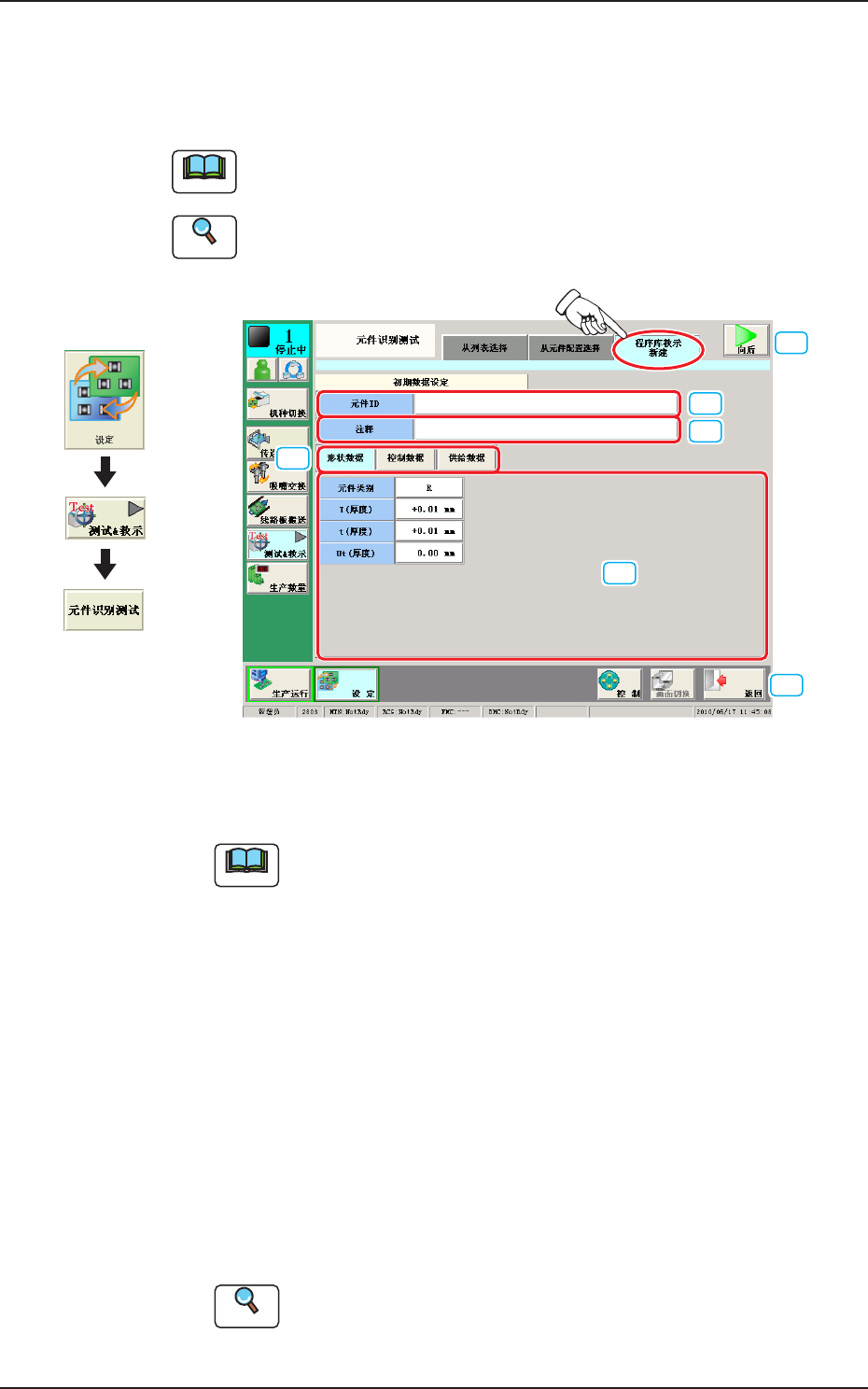 关于测试 & 教示的元件识别测试界面,请参照