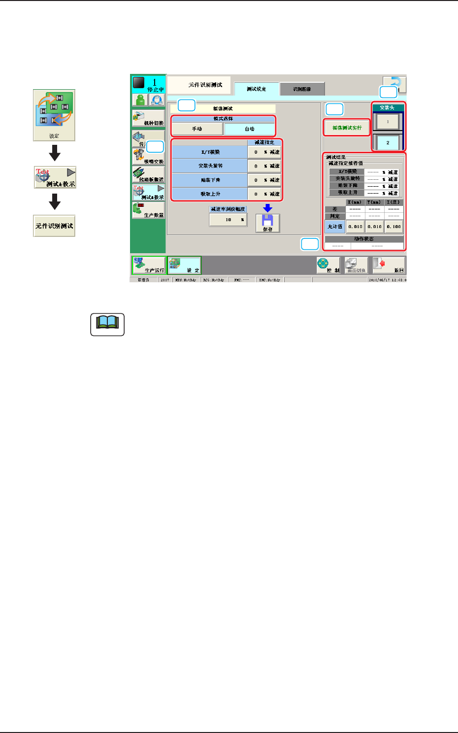 显示 X/Y 横梁、安装头旋转、贴装下降、吸取上升到减速指定值。