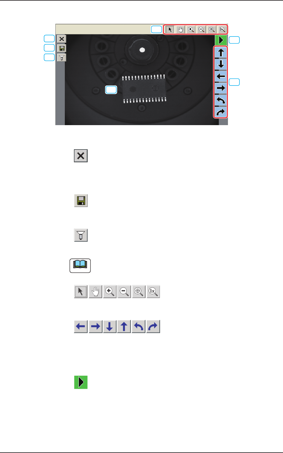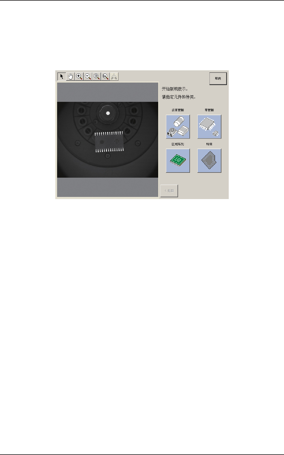 2OM-1752 6-61 1304-001 7.3.6 “ 教示实行 ” 界面 在 “ 元件数据库教示操作 ” 界面,按下 [ 识别实行 ] 按钮或 [ 教示实行 ] 按钮,便显示以下界面。 [ 程序库教示新建 ] 时,启动新建教示魔术师。 请根据界面指示进行操作。 F2F56 7.3 元件识别测试