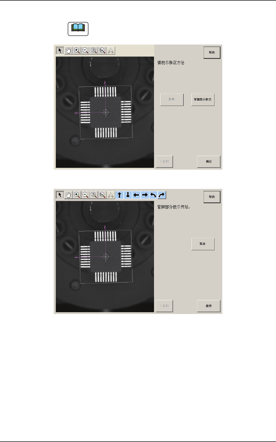 2OM-1752 6-74 1304-001 (9) 按下 [ 确定 ] 按钮。 Note 选择 [ 管脚 ( 引脚 ) 部分教示 ] 时,进行引脚部分教示。 开始部分教示前,请先删除想要再教示的引脚组。 F2F78 F2F79 7.3 元件识别测试