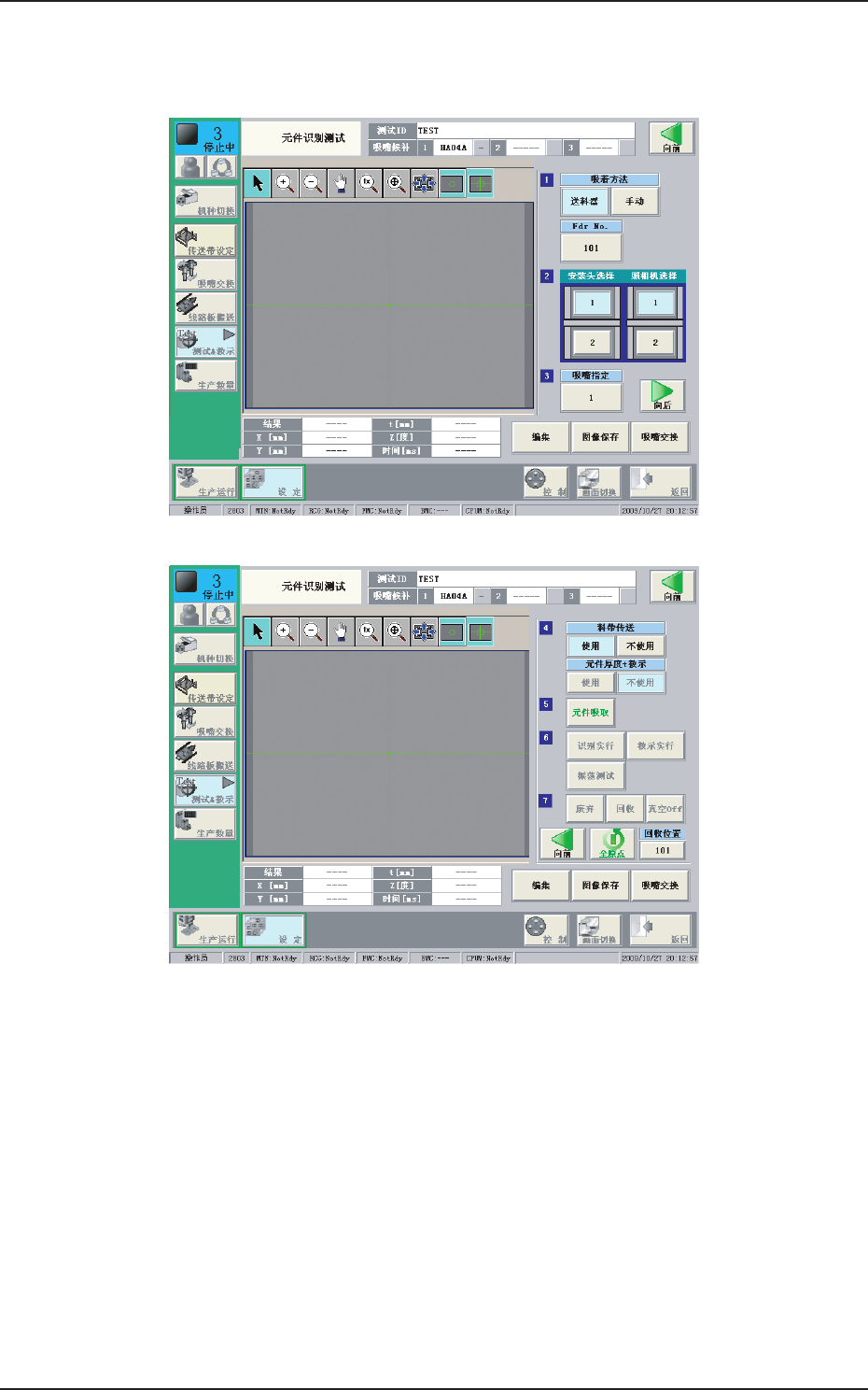 2OM-1752 6-91 1304-001 7.3.8. 元件数据库教示的结束 在 “ 数据库教示 ” 界面,按下 [ 完毕 ] 按钮时,再次返回到教示操作界面。 [2] (1/2) F2F111 (2/2) F2F112 可以用 [ 识别实行 ] 按钮实行已建元件数据库的识别测试。 可以用 [ 编集 ( 编辑 )] 按钮进行已建元件数据库的再编辑。 结束教示时,请按 [ 废弃 ] 或 [ 回收 ] 按钮,废弃、回收元件后,按…