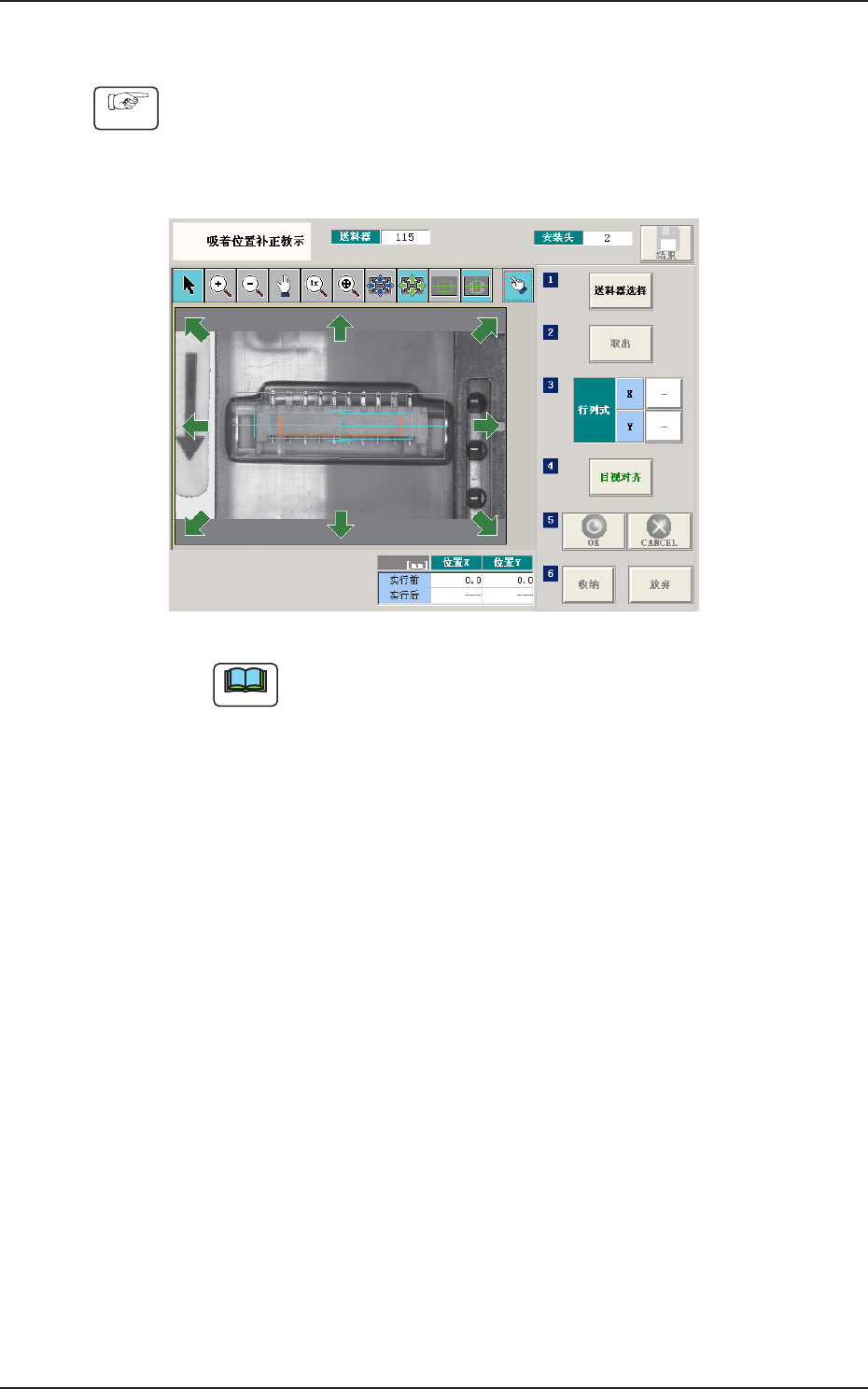 (3) 用识别界面中的图像移动按钮移动,使目视对齐对象的偏心吸取位置