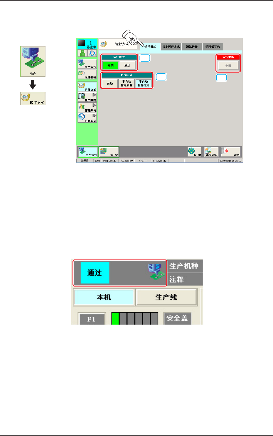 [ 贴装 ] 按钮 : 进行生产运行时选择此按钮。