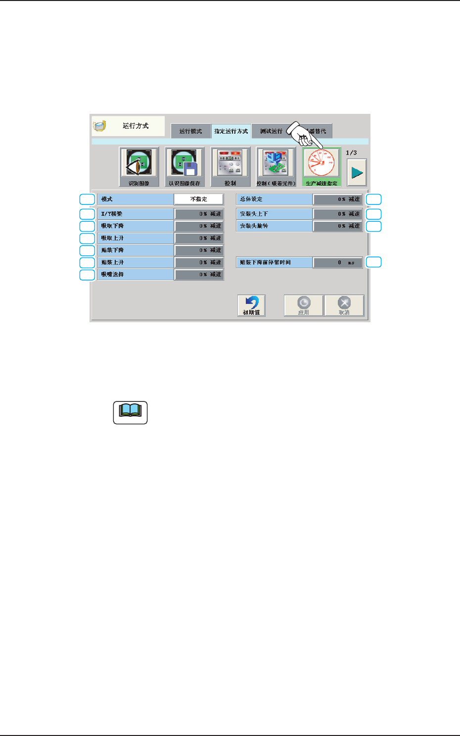 选项卡中,按下 [ 生产减速指定 ] 按钮,便显示以下