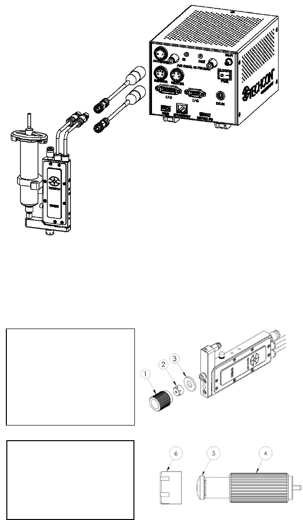 10 St ep 5: • Use t he noz zl e adjustment tool to securely tighten the assembly. Step 3: • Install the nozzle insert (7 ) to the nozzle bu shing. Caut io n : the smaller end of the nozzl e inserts faces out wa rd. • Pla…