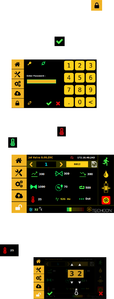 Touch the “Temperature” icon to turn the heater ON and the icon will