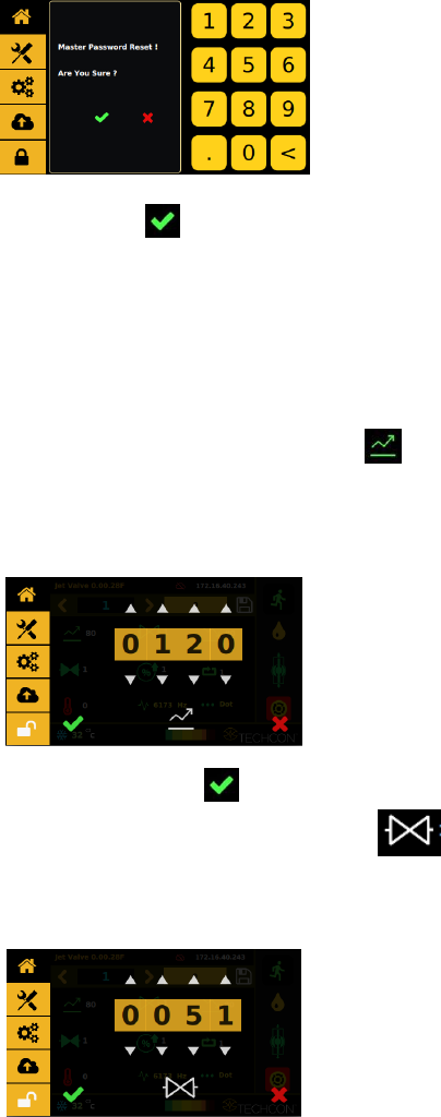 5. Touch the up and down arrows to set the desired open time in µs.