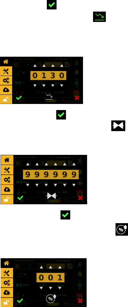 39 15. Touch the ‘ Accept ’ icon to exit 16. Touch the ‘ Pulse ’ ic on to enter the setup scr een 17. Touch th e up and down arrows to set the desired number strokes per dispensing cycle. 18. Touc h the ‘ Accept ’ icon t…