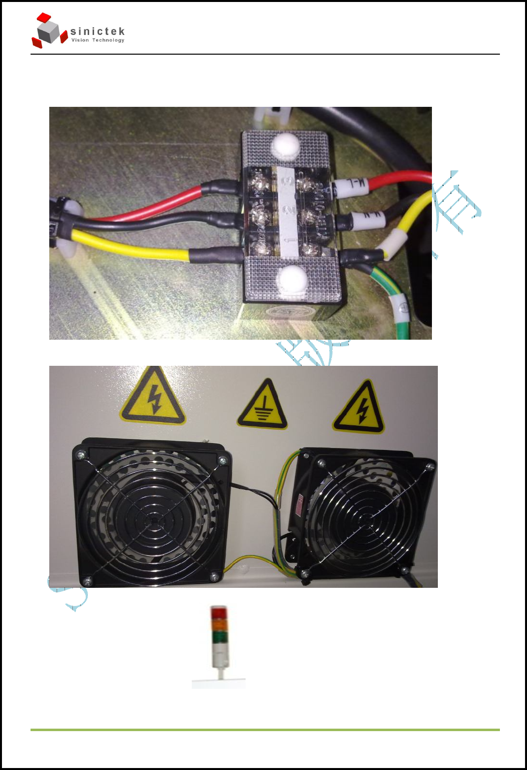 3D_SPI 保养 手册 思泰克光电科 技有限公司 Page 8 Copyright by Sinic-T ek V isi on T ec hno logy Co., L td. 3.4、 头部光源电源线插头、信号线插头检测。 3.5 急停开关、门安全开关检查