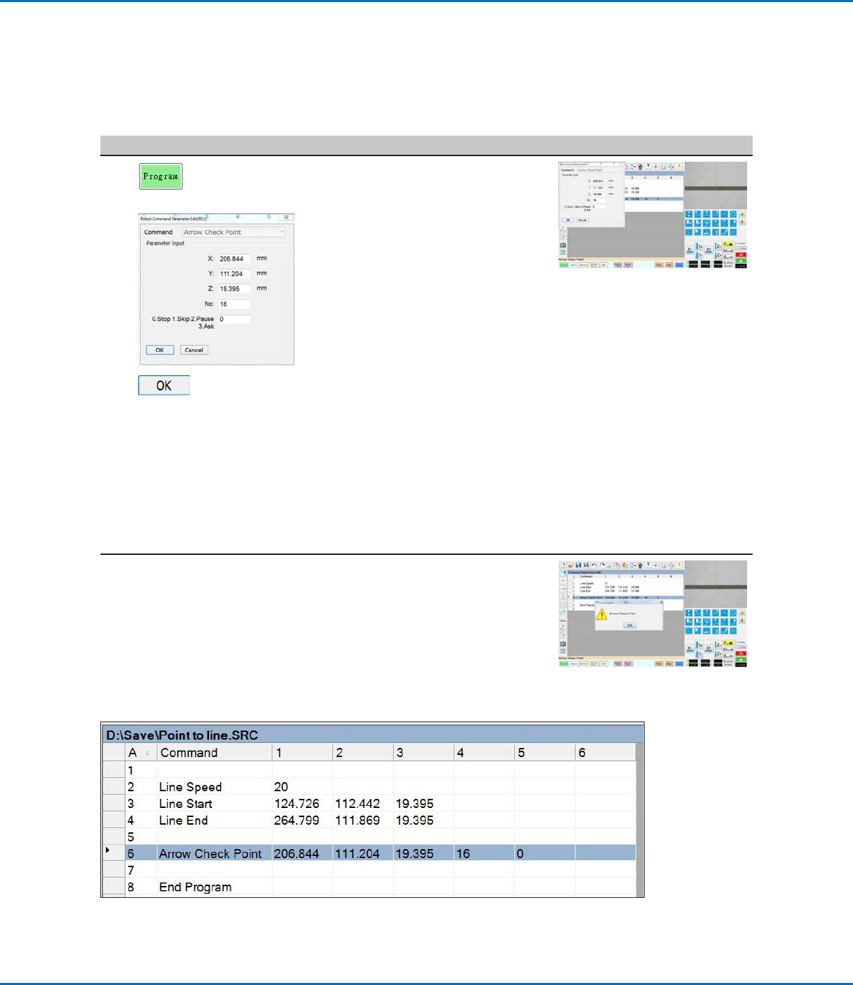 Stop, Skip, Pause, Ask parameter. Refer to “Arrow Check Point” on