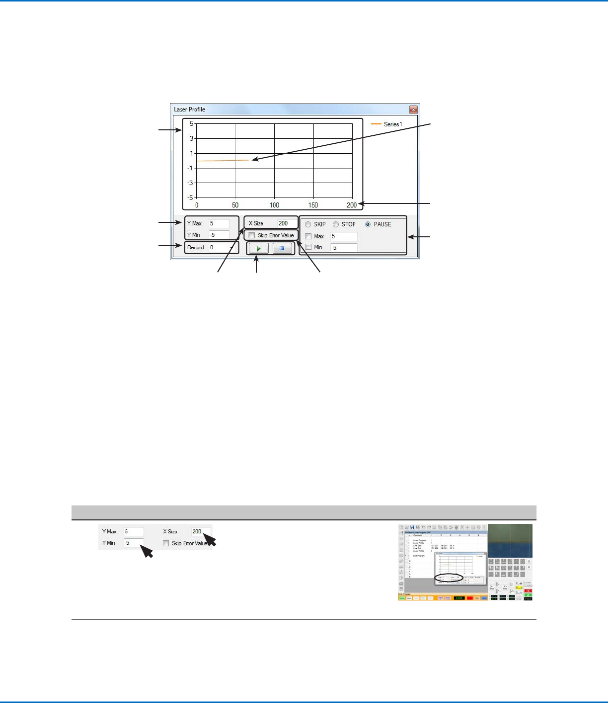 When the laser is measuring and recording, you can use the Laser Profile window to specify Max and Min threshold