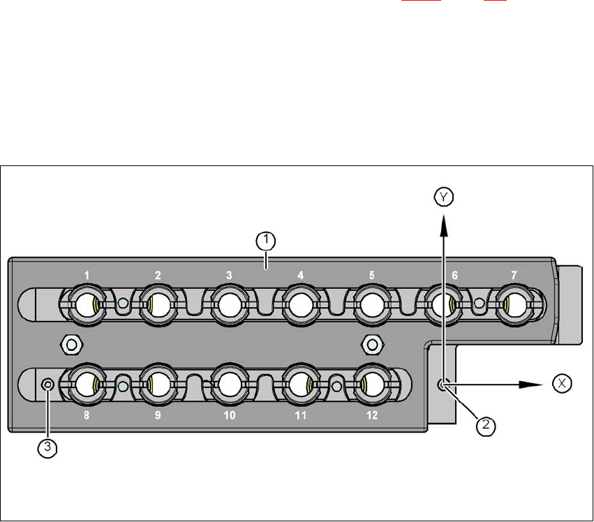 Fig. 6.1 - 8 Nozzle magazine - holder numbering, fiducials for determining the position and angular position