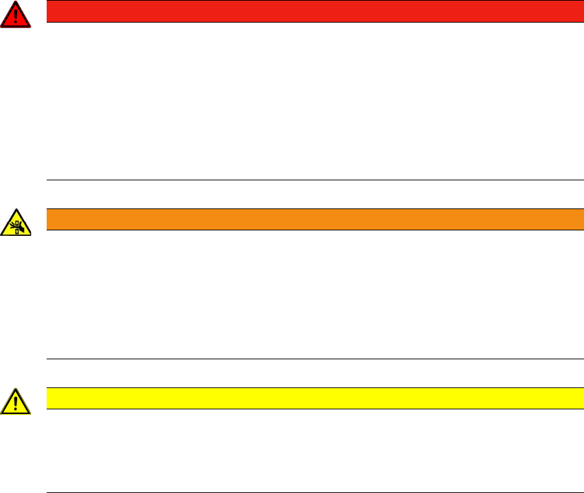There is a risk of death, severe injury and/or considerable damage to equipment if these