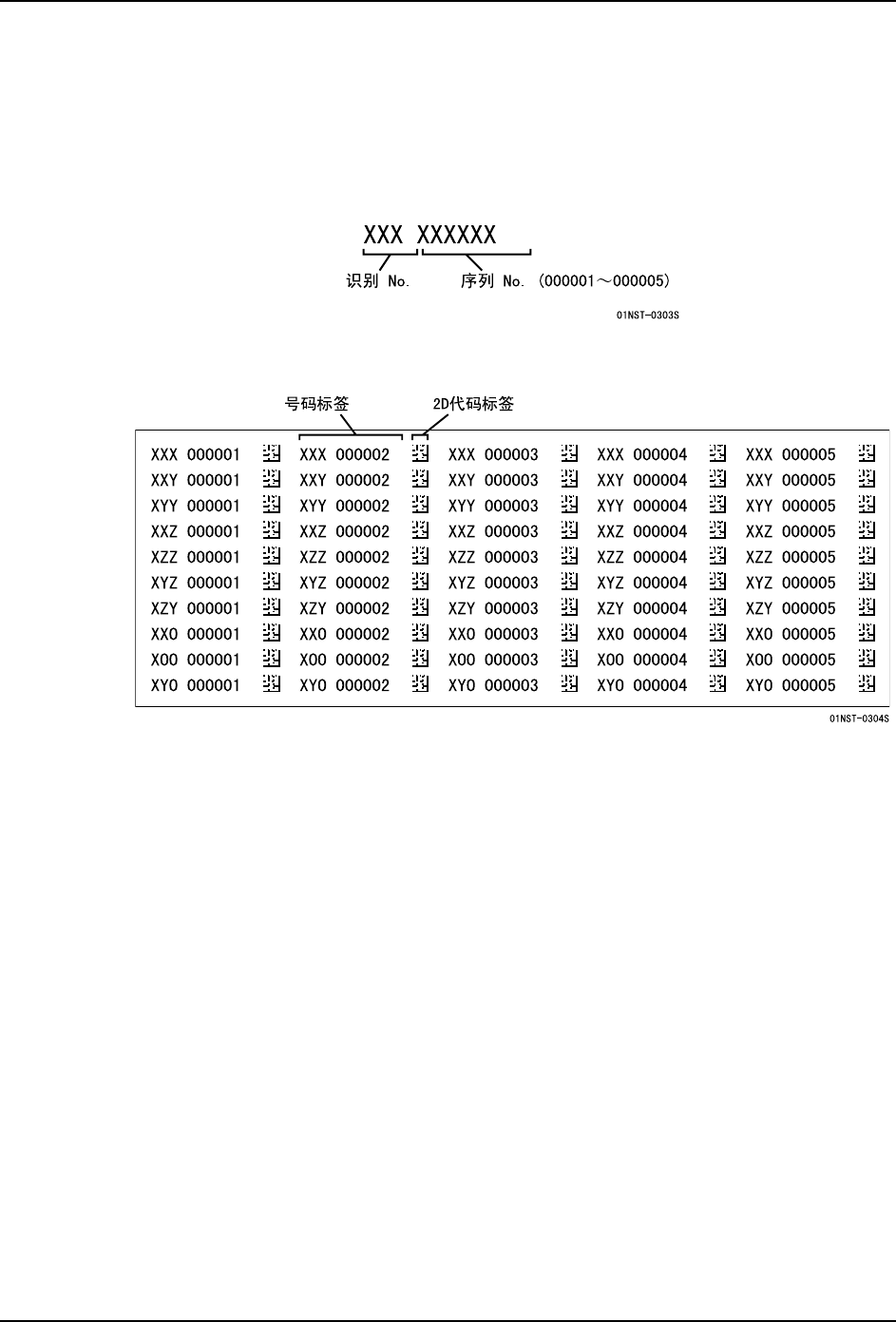 如下图所示,2D代码是由3位的识别No.和6位的序列No.组成。