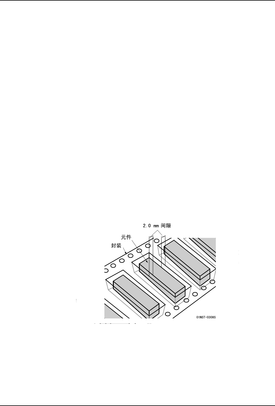 ·元件与封装之间,单侧必须有爪部件能够伸入的 2 mm 以上的间隙。
