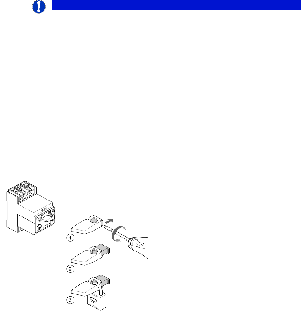 ► Use the screwdriver to push the locking lug (2) out of