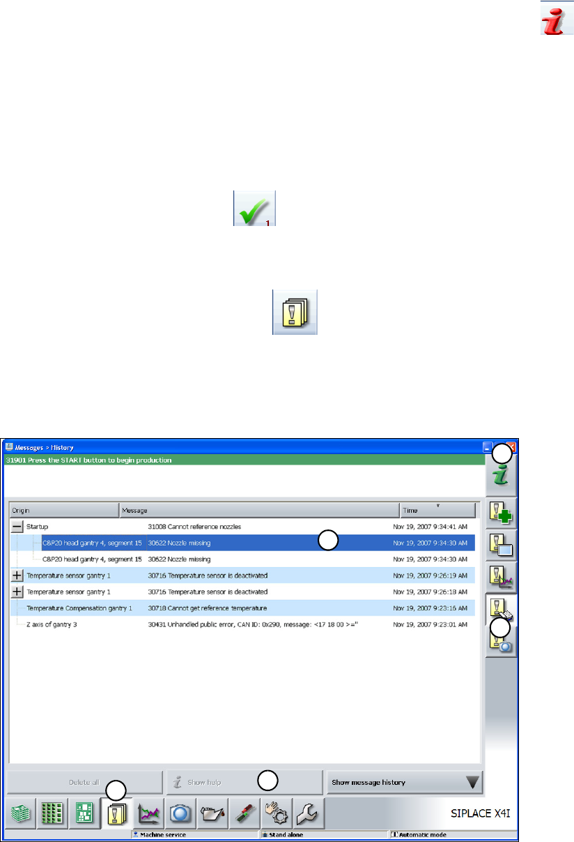Instrucciones de servicio SIPLACE Serie-X Tareas en la máquina A partir de la versión de software SR.70x .xx Informaciones de alarma y ayuda online Edición 01/2011 315 5.6.1 Visualizar informaciones re ferentes a la alar…
